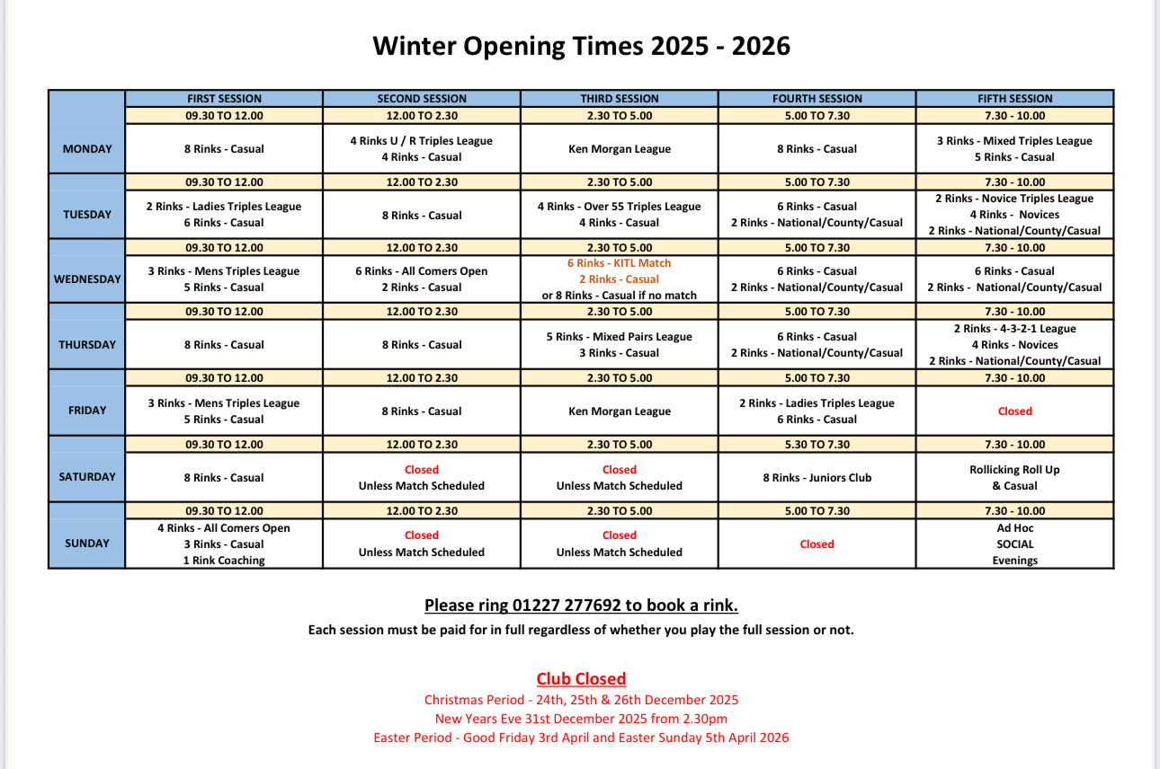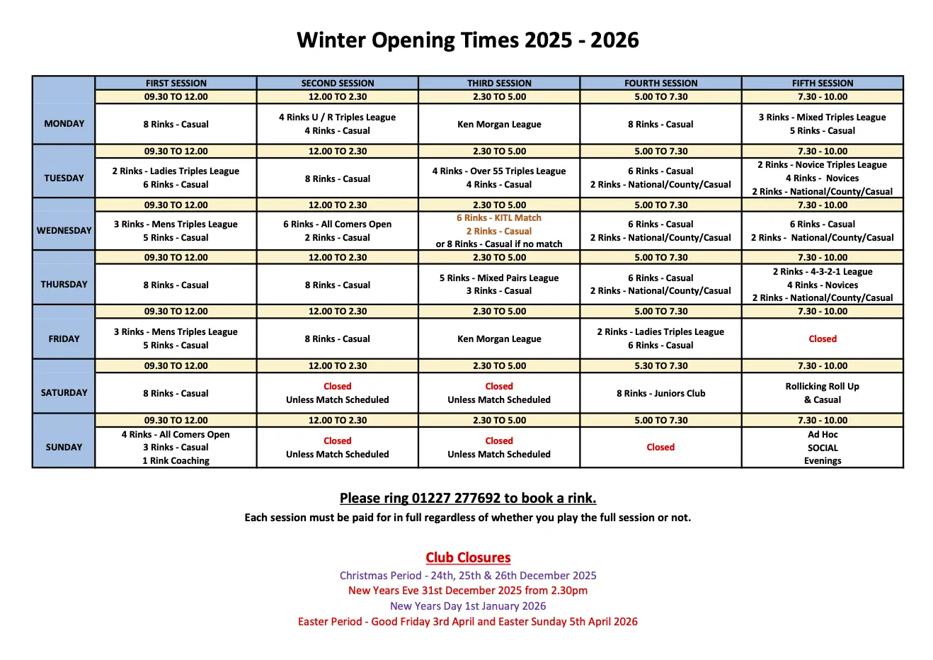 Our membership currently stands at just over 500 members, whose ages run from 8 to 100+, yet we have plenty of room to accommodate additional players, so if you wish to find out more, or even give this fascinating sport a try, please do not hesitate to get in touch.